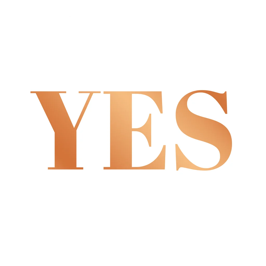 Hippe sticker met in koperfolie 'YES' om de envelop van je trouwkaart mee dicht te plakken. Mooi op een roestbruine envelop!