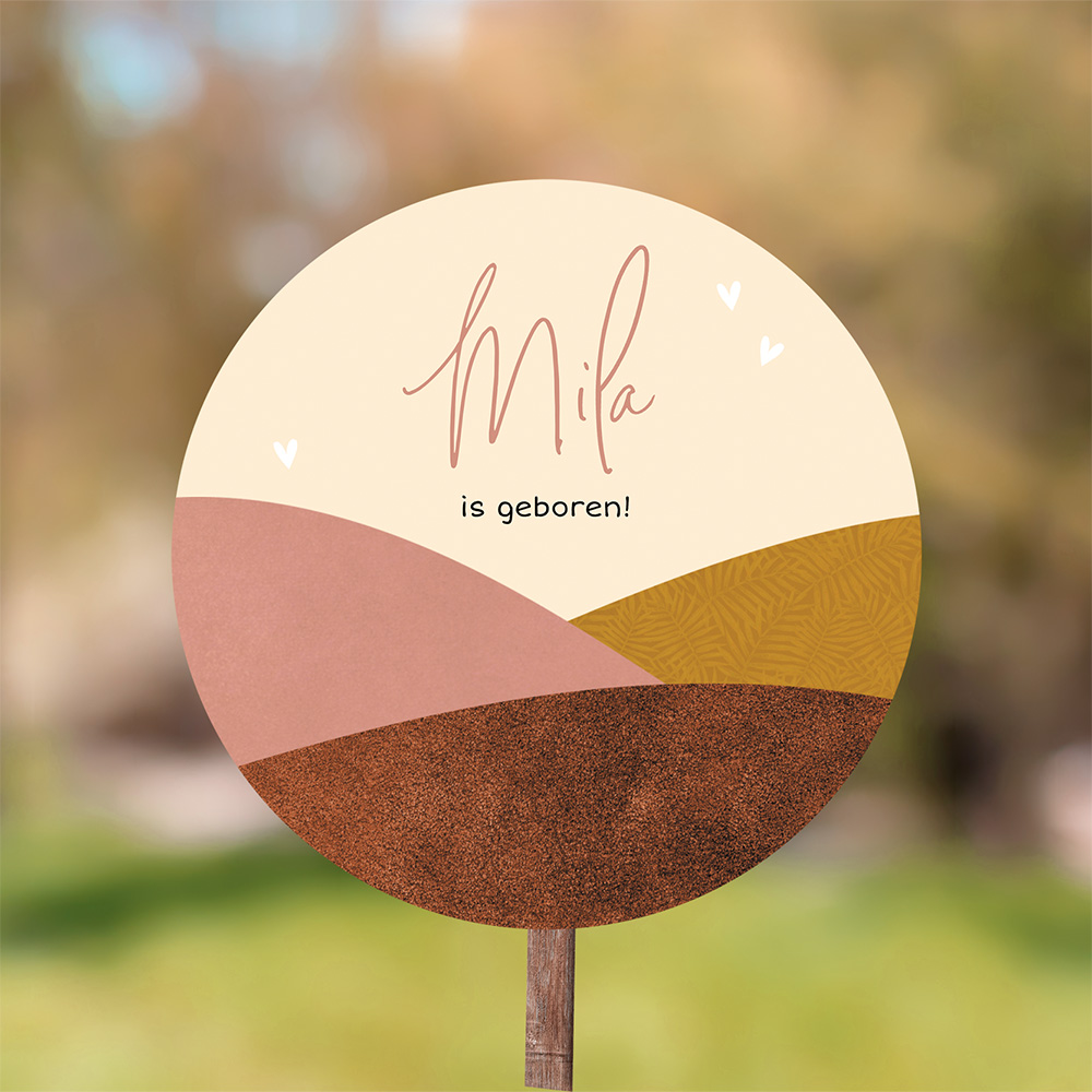 Verwelkom jullie dochter met dit leuke, minimalistische tuinbord met landschap. Dit tuinbord past bij dit geboortekaartje.
