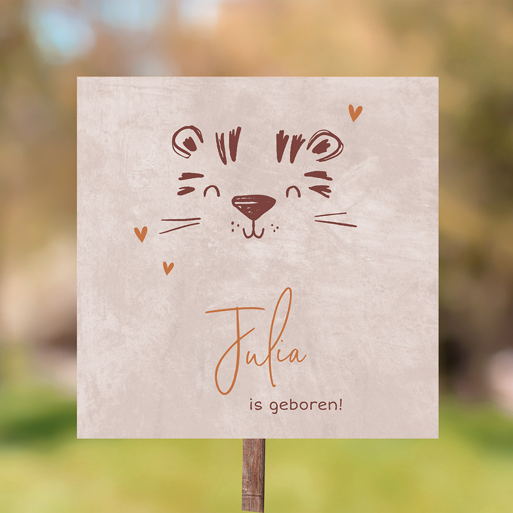 Verwelkom jullie dochter met dit stoere tuinbord met tijger. Dit tuinbord past bij dit geboortekaartje.
