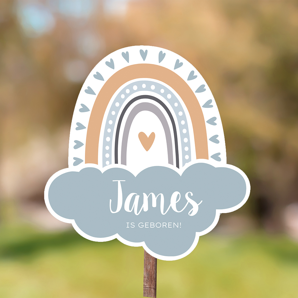 Verwelkom jullie zoontje met dit vrolijke tuinbord in de vorm van een regenboog met een wolk. De regenboog straalt met liefdevolle hartjes. Personaliseer eenvoudig de naam in onze handige online editor.