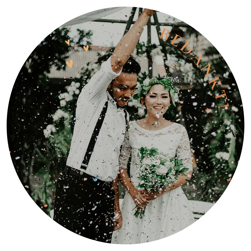 Ronde bedankkaart met trouwfoto en koperfolie