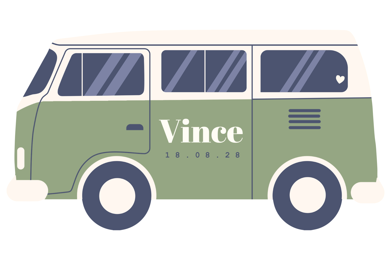 Reis je graag, heb je een Volkswagen busje of ben je op zoek naar een origineel geboortekaartje voor je aanstaande zoontje? Ga voor dit unieke ontwerp in de vorm van een groene, vintage bus! Je kunt de kleur van het busje zelf aanpassen in onze editor.
