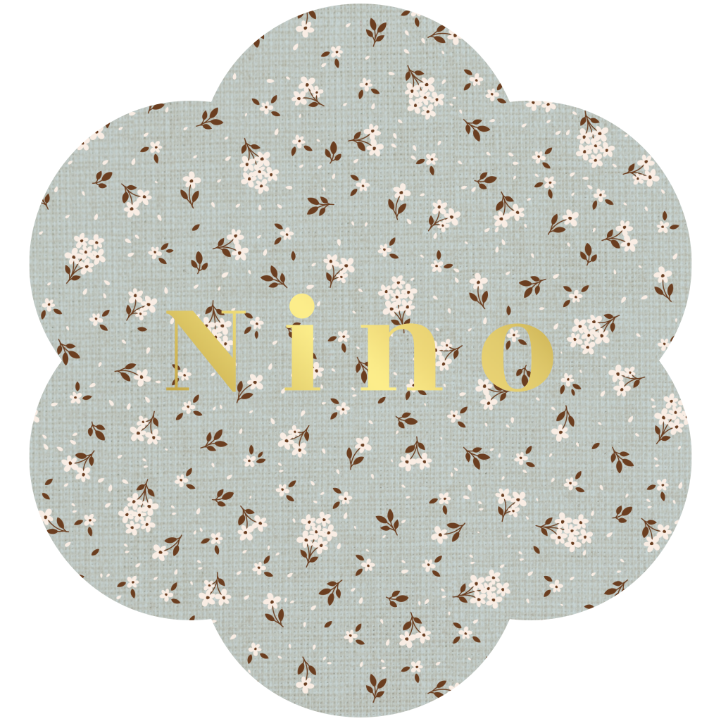 Trendy geboortekaartje met goudfolie naam en in de vorm van een bloem. Op de achtergrond staat een patroon van kleine bloemetjes in creme en donkerbruin. De unieke vorm van dit kaartje maakt dit helemaal tot een bijzonder design. Liever goudfolie of een ander lettertype? Pas dit kaartje zelf aan in onze editor.