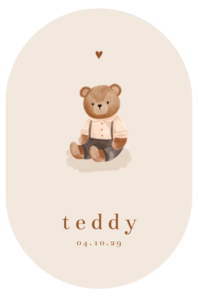 Beige geboortekaartje in ovale vorm van schattig leeuwtje. Of er nu een meisje of jongen op komst is, met dit lieve ontwerp kondig je zijn of haar geboorte aan in stijl. Liever een ander lettertype of de achtergrondkleur? Pas dit kaartje aan met onze handige ontwerptool.