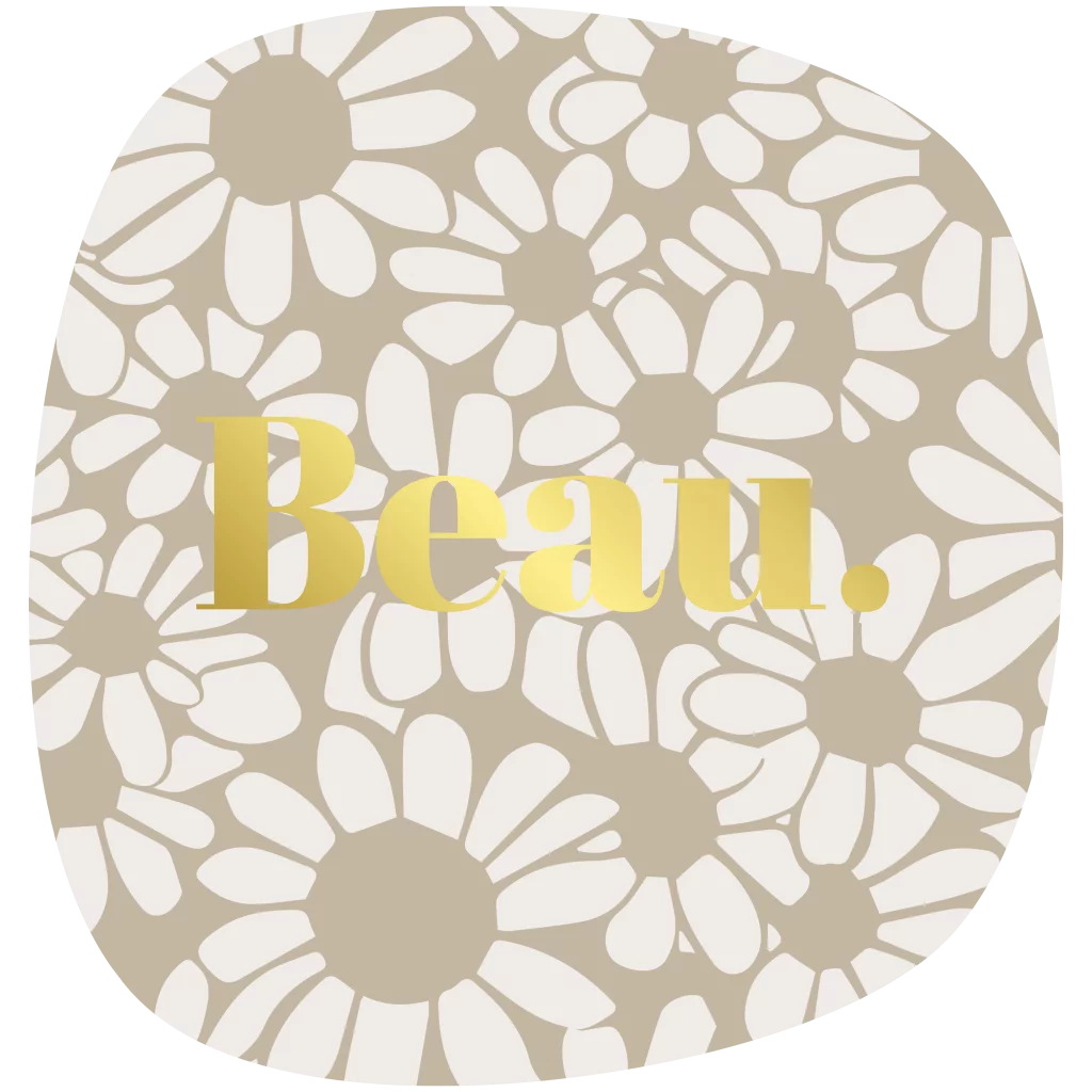 Trendy geboortekaartje met goudfolie naam en patroon met retro bloemen in beige tinten. De unieke vorm van dit kaartje maakt dit helemaal tot een bijzonder design. Liever goudfolie of een ander lettertype? Pas dit kaartje zelf aan in onze editor.