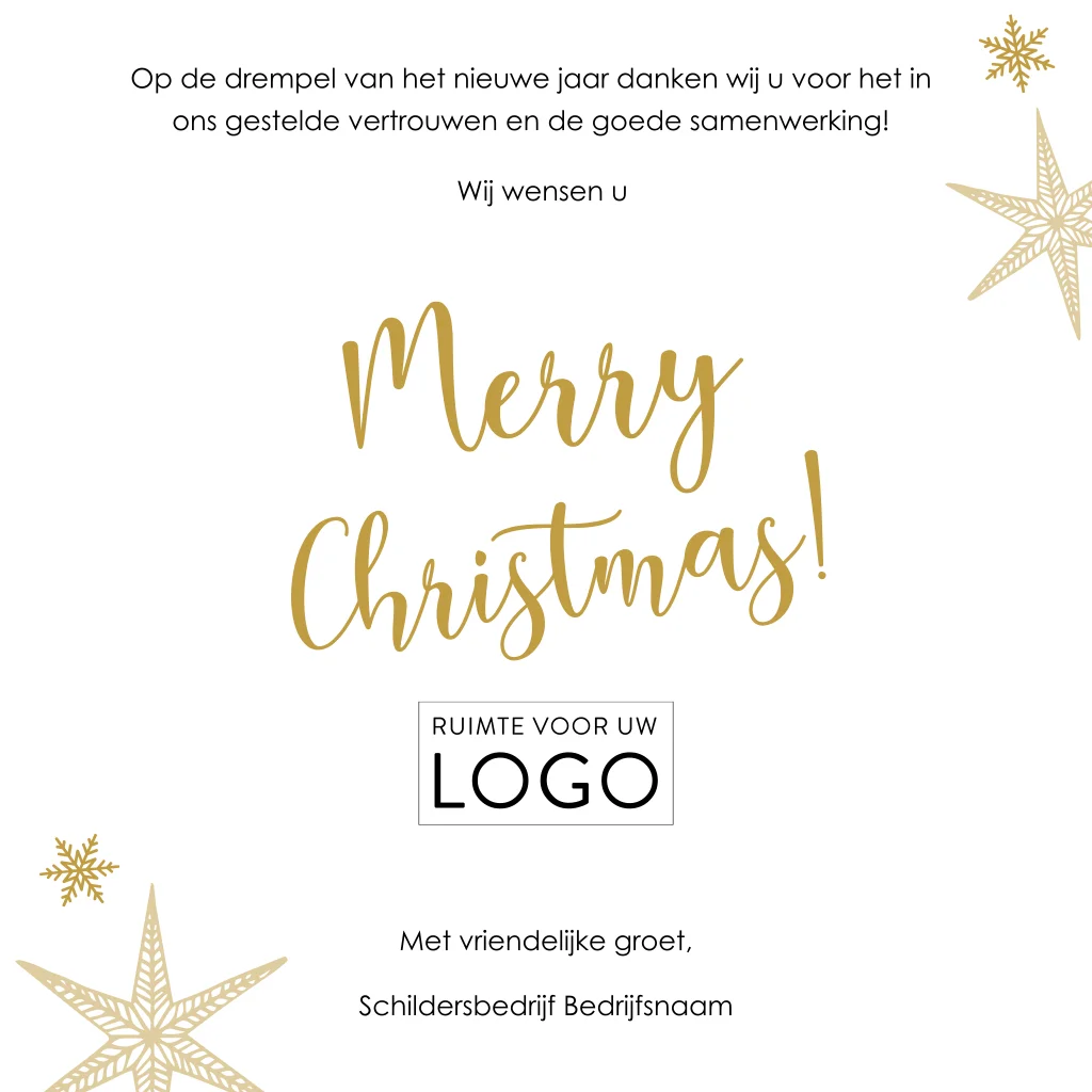 Kerstkaart speciaal voor schilders met voorop een verfpot. De verf is 'uitgesneden', dit is dus een doorkijkje en je leest dus de tekst die aan de binnenzijde staat. Hoe origineel is dit! Goed checken of het logo en de tekst zichtbaar zijn vanaf de voorzijde, de editor geeft dit goed aan.