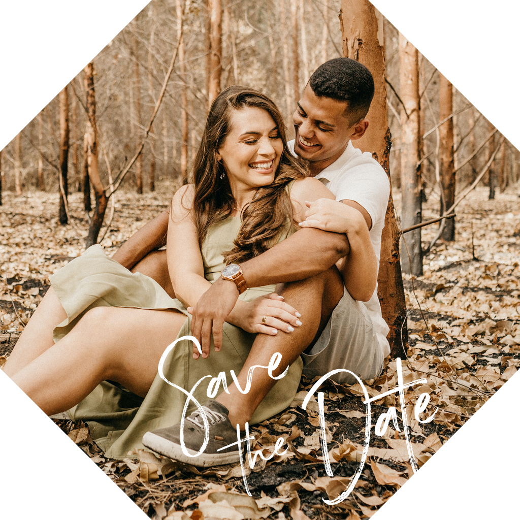 Ben je op zoek bent naar een originele save the date? Met deze achthoekige kaart zal je zeker opvallen! Je hebt verder niet veel nodig om de save the date kaart mooi te maken. Plaats een mooie foto van jullie samen en in een speels lettertype de tekst erop en klaar!