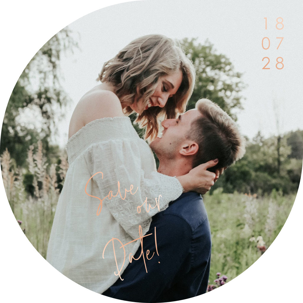 Ben je op zoek bent naar een originele save the date kaart? Deze kaart met druppel vorm heeft naast een aparte vorm ook nog foliedruk. Plaats een mooie foto beeldvullend op de kaart, in de rechter hoek kun je mooi de trouwdatum plaatsen.