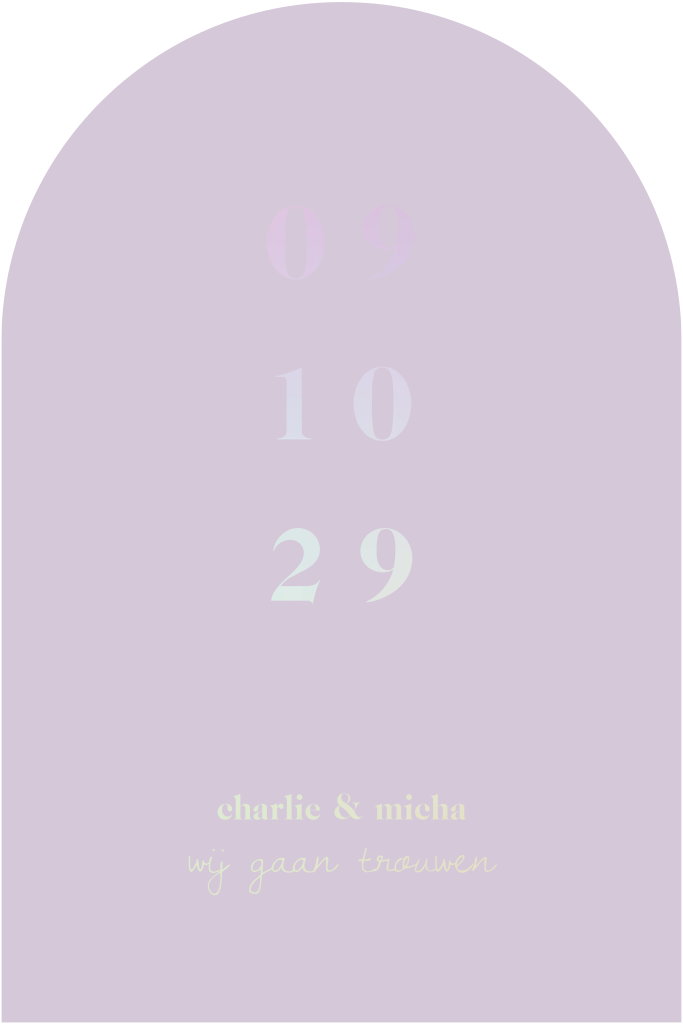 Lila trouwkaart in boogvorm met holografische folie