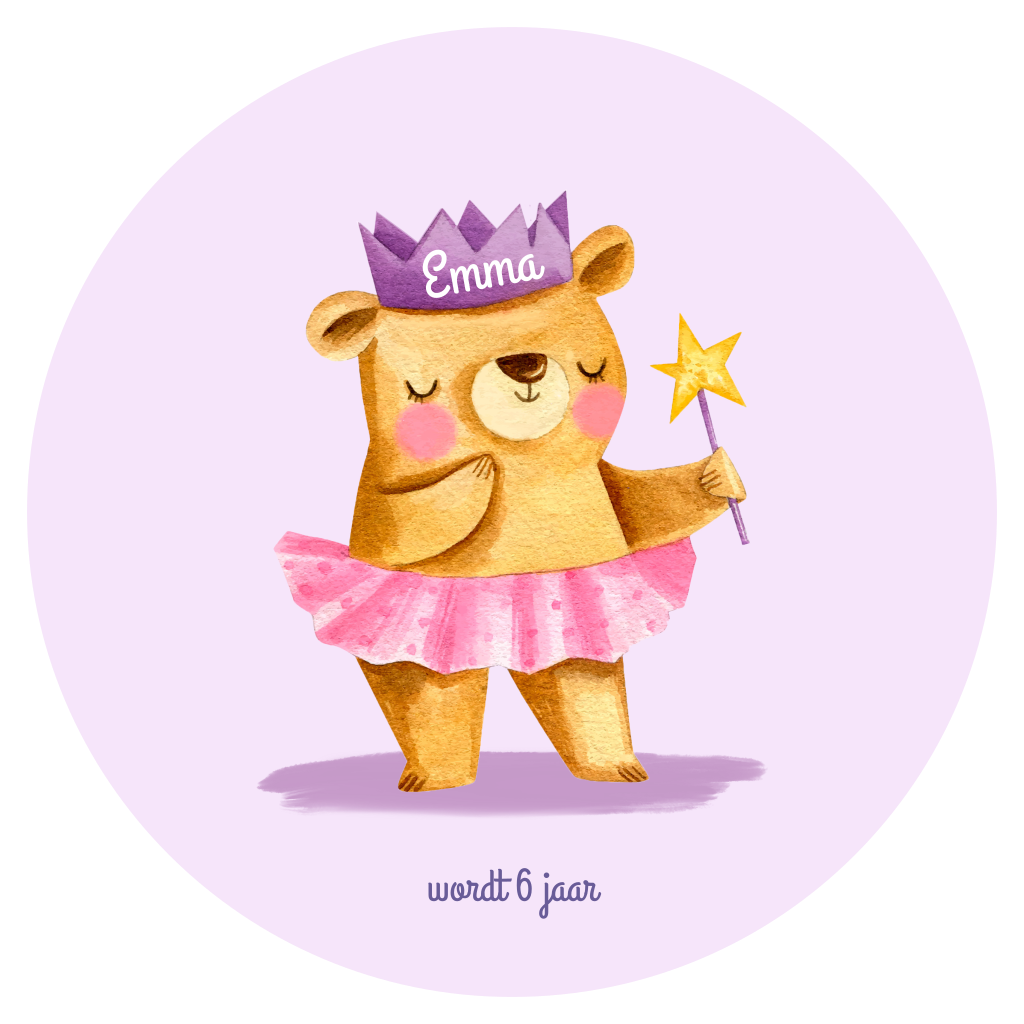 Organiseer je binnenkort een kinderfeestje om de verjaardag van je dochter te vieren? Kies dan voor onze betoverende lila uitnodiging met een schattig prinsessenbeertje met een magische toverstaf en een fonkelende ster. De kaart heeft een leuke ronde vorm.