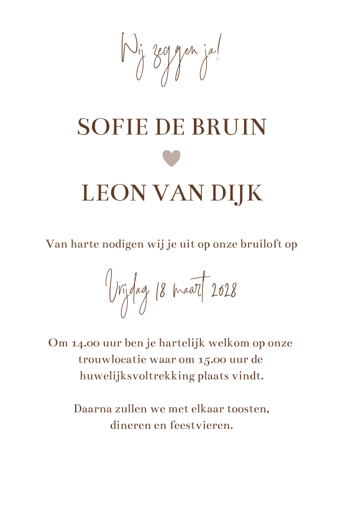 Gaan jullie binnenkort trouwen en willen jullie je kindje terug laten komen op de trouwkaart? Ga voor dit leuke ontwerp met silhouetjes van een gezinnetje. Wil je de silhouetjes aanpassen? In onze editor vind je allerlei verschillende afbeeldingen in de map 'Silhouet familie' en kun je dit ontwerp helemaal naar eigen wens aanpassen.