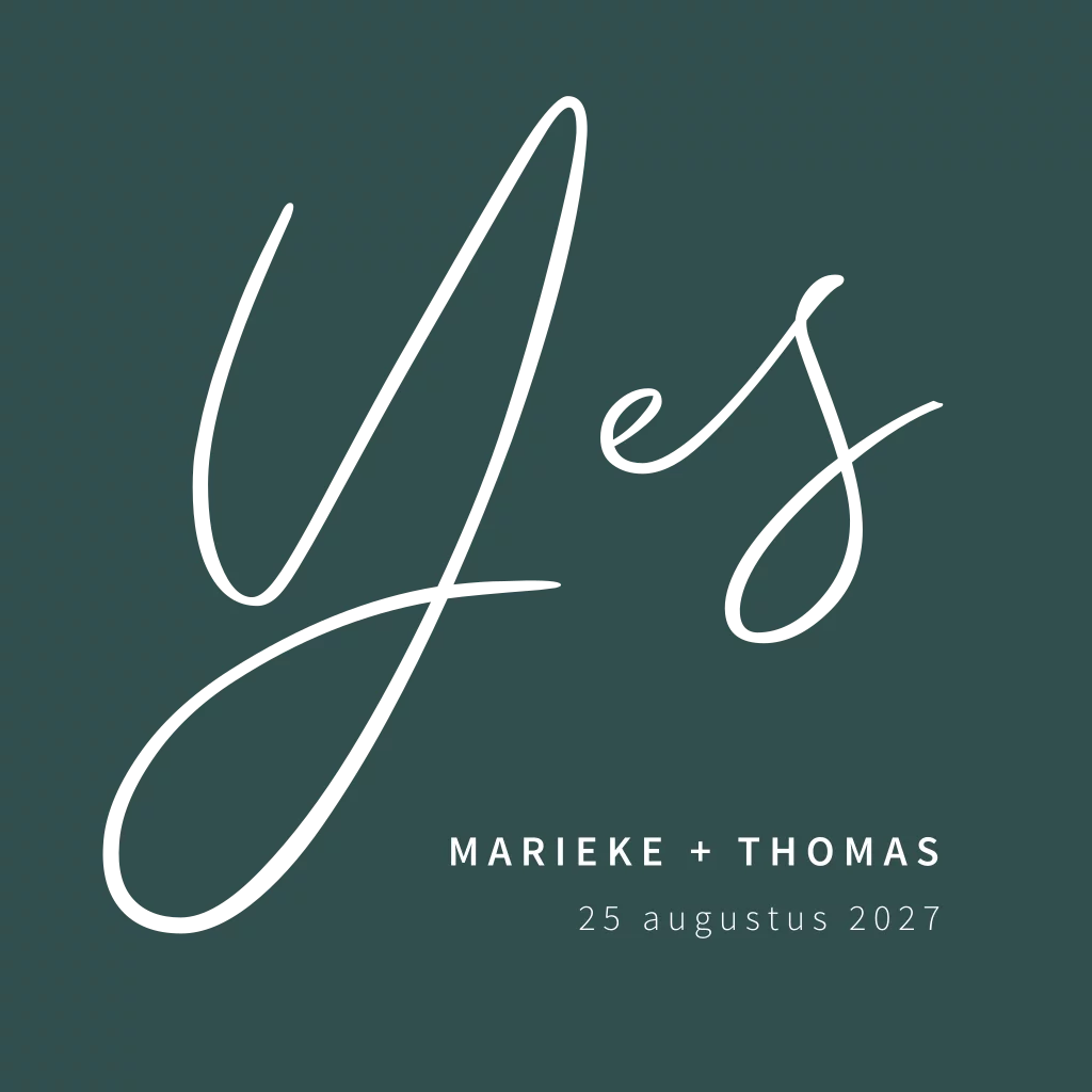Zeegroene trouwkaart met in stijlvolle typografie yes
