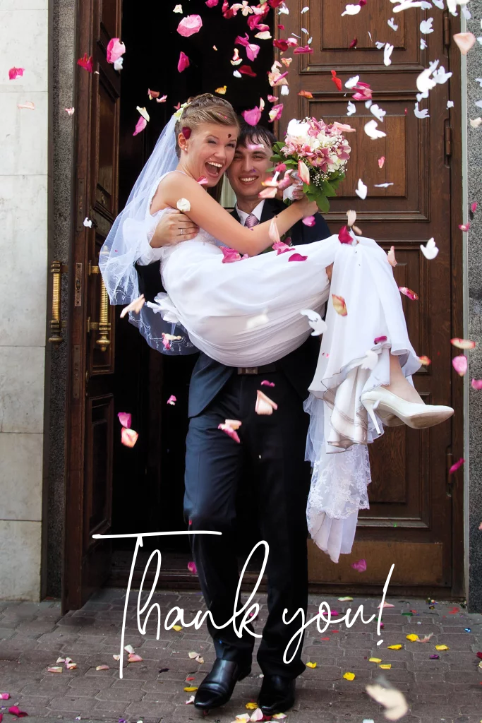 Het is gebruikelijk om ongeveer zes weken na jullie trouwdag je gasten een bedankkaart te sturen voor hun aanwezigheid op jullie grote dag. Deze bedankkaart past perfect bij de "trouwkaart met blauwe waterverf veeg en WeDo in goudfolie" hebt gekozen.