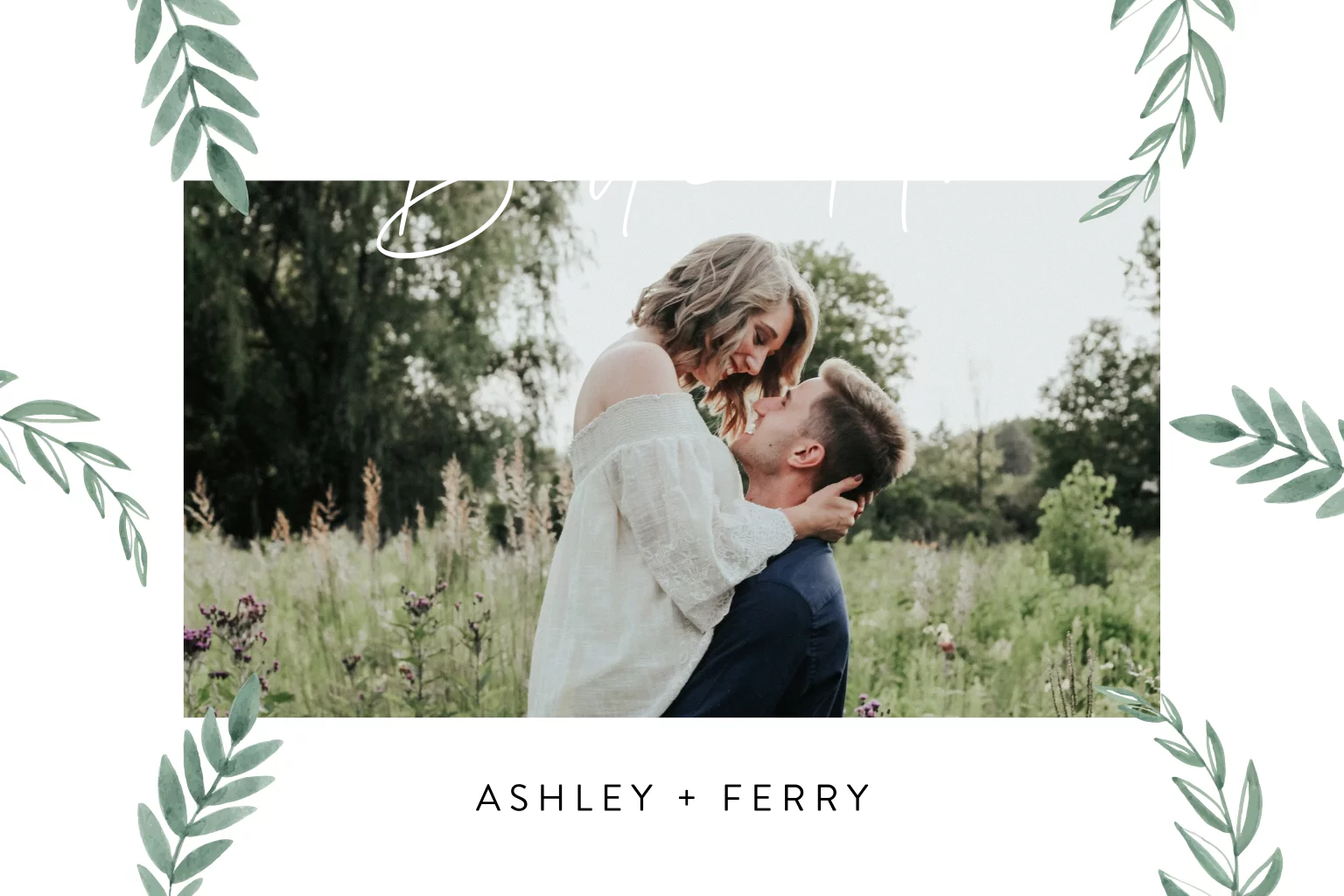 Wil jij jouw gasten na de bruiloft bedanken voor hun aanwezigheid en cadeau? Verstuur dan deze stijlvolle goudfolie bedankkaart met fotokader. De foto wordt omrand door verschillende groene bladeren. In het kader kun je een mooie foto van de bruiloft kwijt. Pas de kaart naar wens aan en bestel een drukproef.
