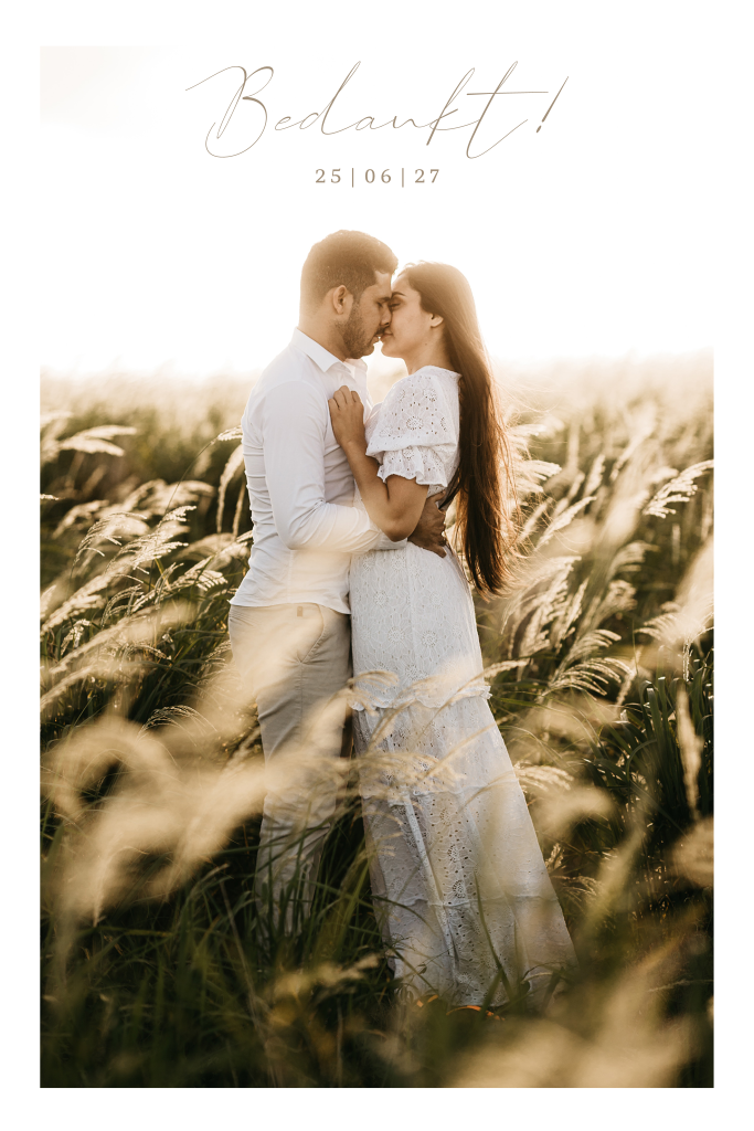 Jullie trouwdag en huwelijksreis zit er op en wat was het een feest. Het is natuurlijk extra leuk om al je gasten te bedanken met een mooie bedankkaart met een mooie foto herinnering. Stuur deze kaart naar familie, vrienden en bekenden die op jullie trouwdag aanwezig waren.