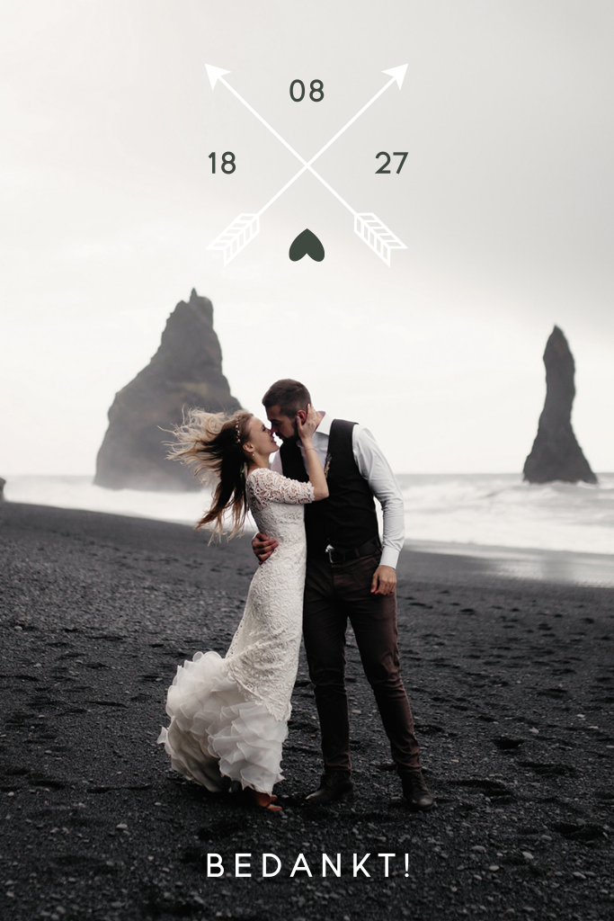 Als het goed is hebben jullie intussen een fantastische trouwdag achter de rug. Nu is het tijd om nog een bedankkaart te sturen naar de gasten die op jullie bruiloft zijn geweest. Het is leuk om hier de mooiste trouwfoto op te zetten want de gasten zijn daar vast erg benieuwd naar. Bestel deze kaart in combinatie met de andere kaarten in deze stijl.