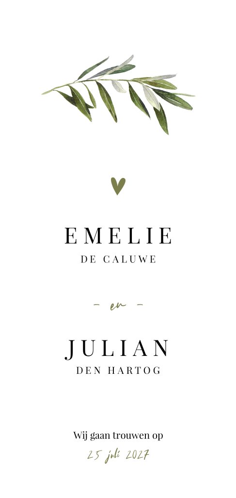 Chique trouwkaart met groen olijftakje