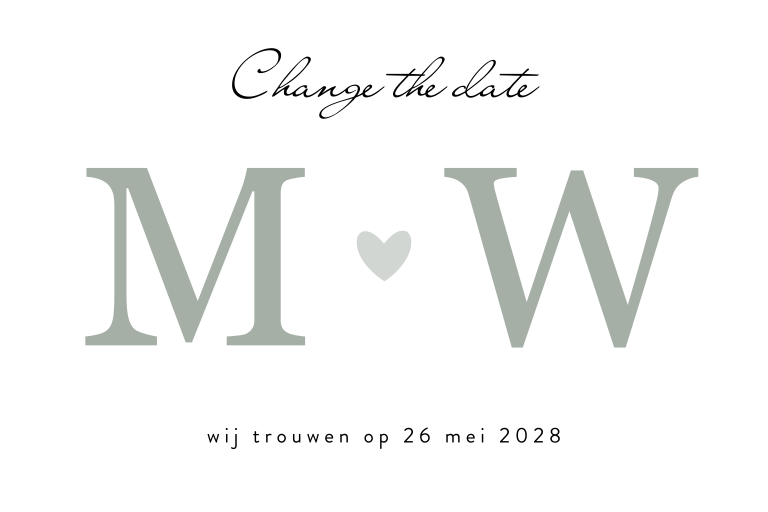 Change the date kaartje met grijsgroene initialen