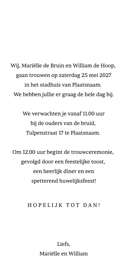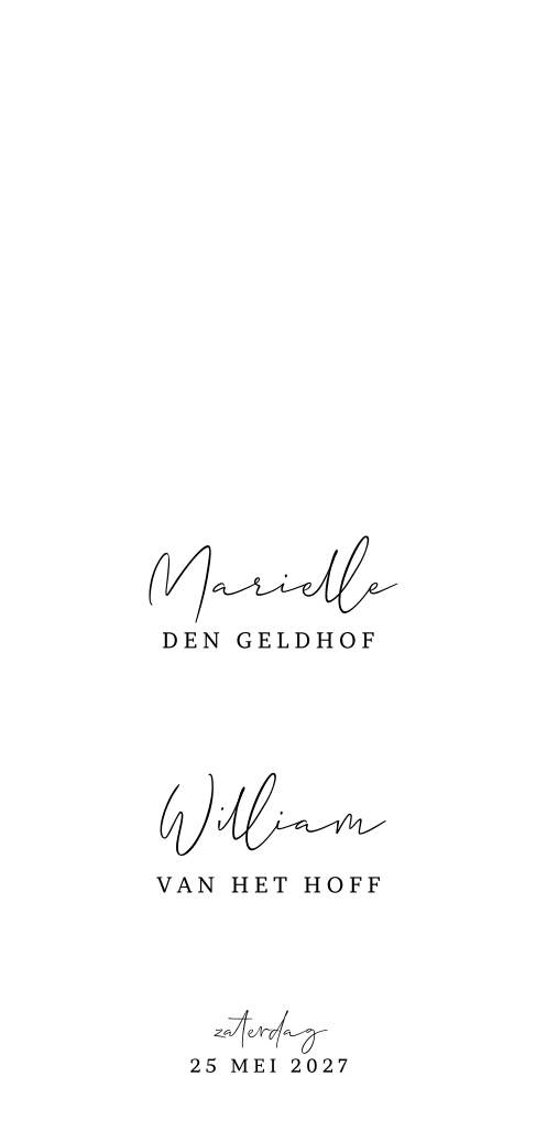Op zoek naar een stijlvolle trouwkaart met een romantische uitstraling? Dit klassieke ontwerp met gouden regen, gedrukt met goudfolie, past daar precies bij. Deze trouwkaart heeft een witte achtergrond en is versierd met gouden elementen. Met chique typografie staan jullie namen voorop de kaart. In de kaart kun je alle informatie over jullie heugelijke dag kwijt.