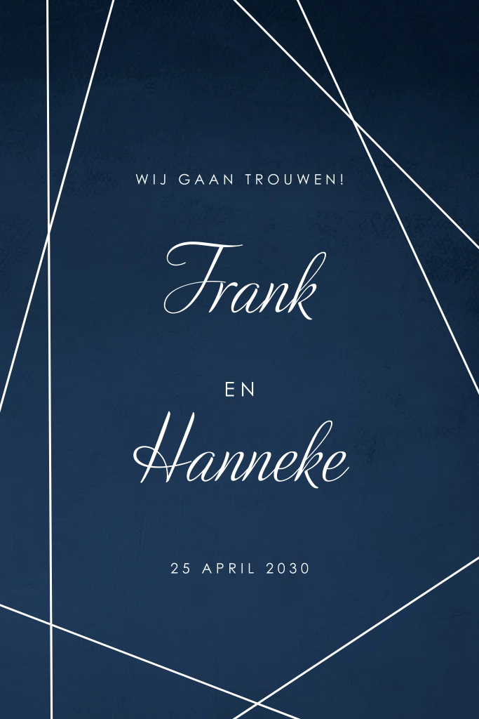 Donkerblauwe trouwkaart met koperfolie lijnen