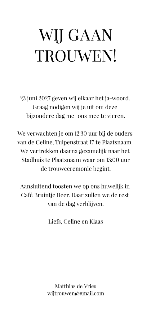 Witte minimalistische trouwkaart met voorop de tekst 'we do' in sierlijke typografie. Daaronder staan jullie namen met een strak font. Stijlvolle trouwkaart om je gasten mee uit te nodigen met een klassieke uitstraling. In de kaart zie je verschillende iconen. Hiernaast kun je het dagprogramma plaatsen. Nieuwsgierig geworden? Bestel een drukproef.