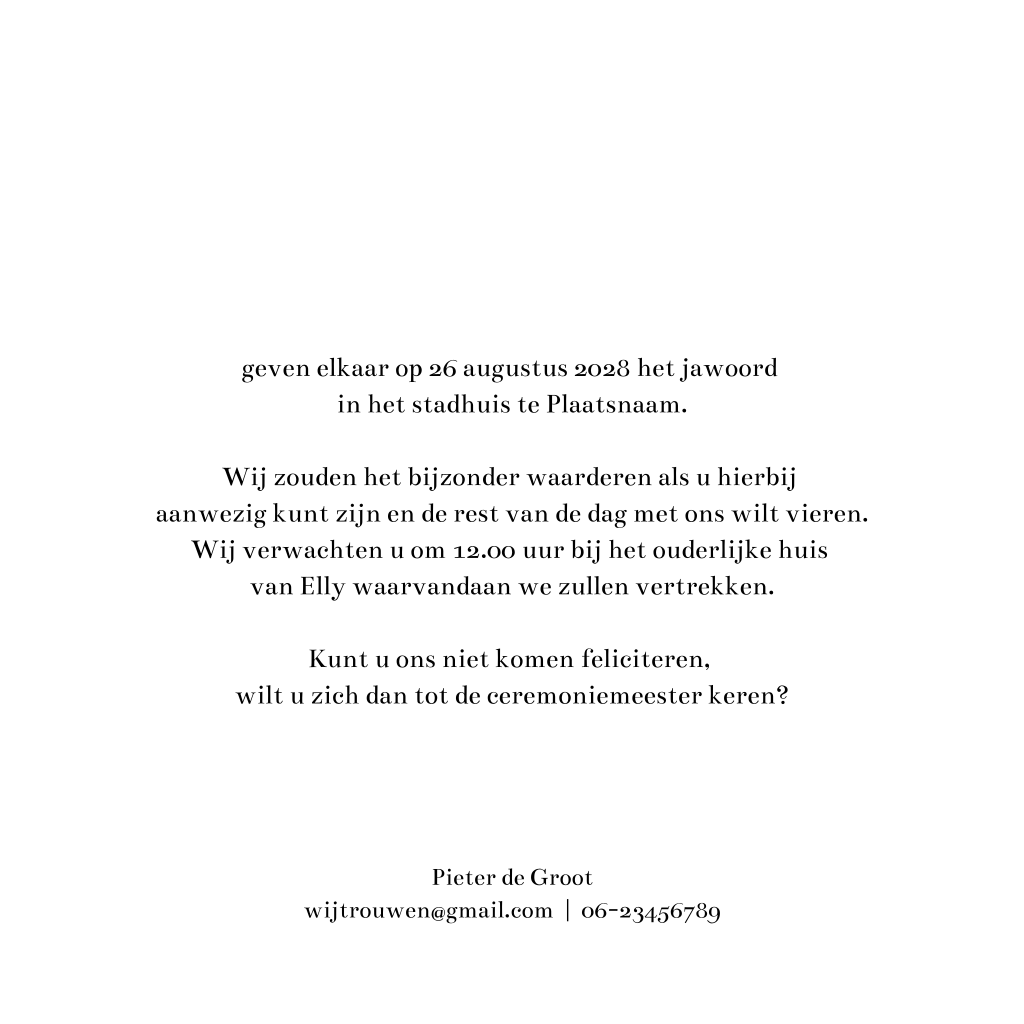 Jullie gaan trouwen! Nodig je gasten voor jullie trouwdag uit met deze chique trouwkaart met romantische bloemen op een zwarte achtergrond. De namen van het bruidspaar zijn, net als de trouwdatum, gedrukt met écht goudfolie. Met onze designtool kun je deze kaart zelf aanpassen en de kleur van de folie makkelijk wijzigen naar roségoudfolie, zilverfolie, koperfolie of regenboogfolie.