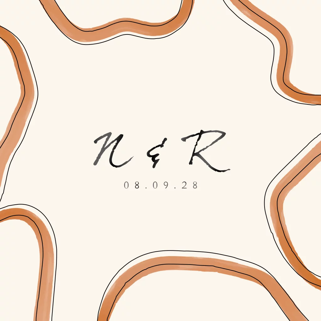Trouwkaart met roestbruine lijnen en hoogglans initialen