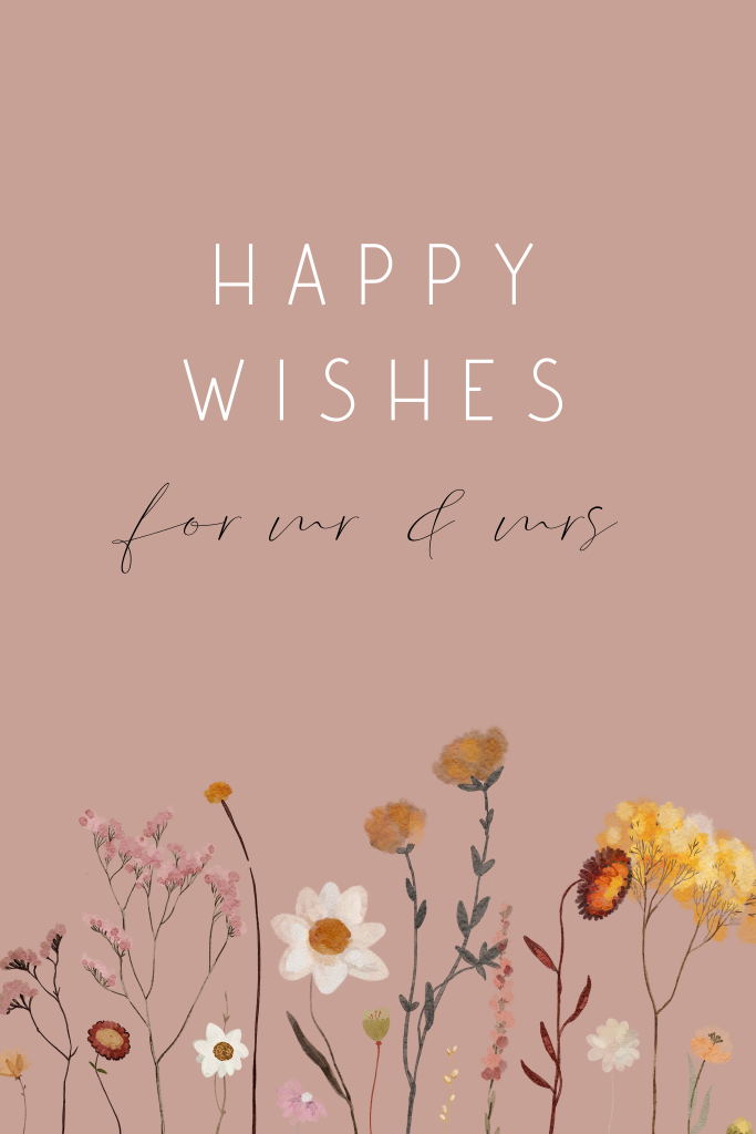 Botanische invulkaart voor op je bruiloft met getekende wilde bloemen. Je gasten kunnen hiermee een leuk berichtje voor jullie achterlaten. Zo heb je een leuke herinnering voor later. Pas dit gastenkaartje zelf aan in onze editor.