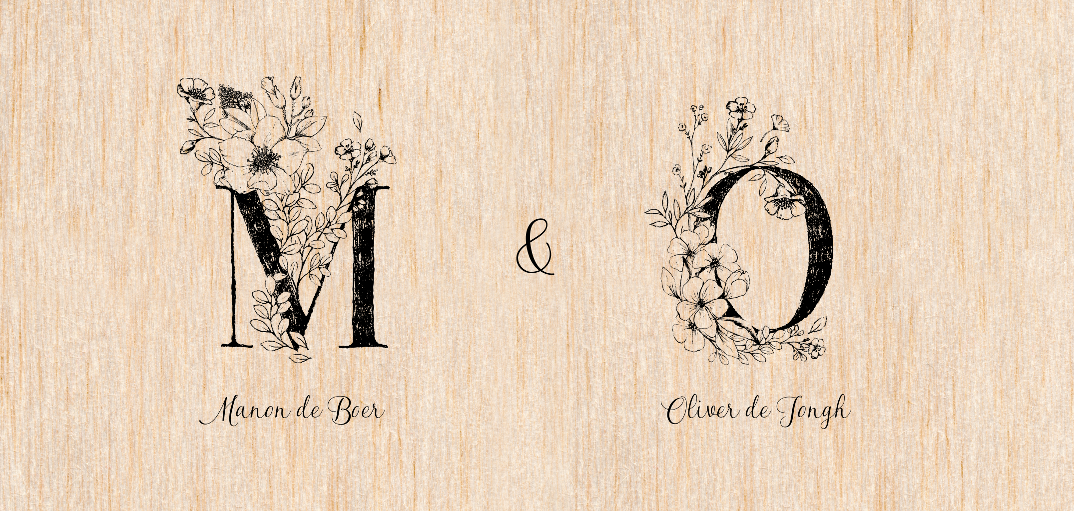 Houten trouwkaart met botanische initialen