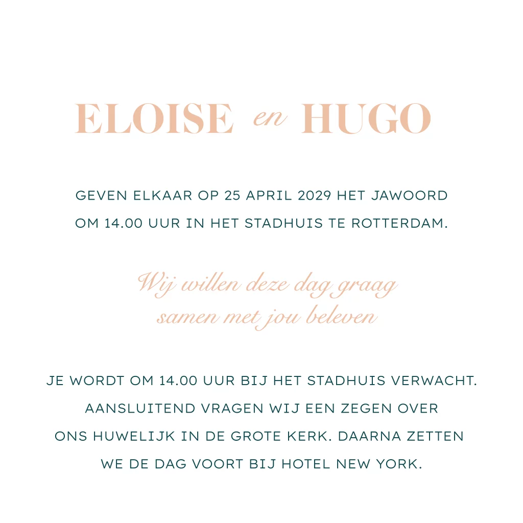 Ontdek onze donkergroene klassieke trouwkaart, versierd met een roze kroonluchter met kaarsen. Dit ontwerp combineert een hippe kleurstelling met de klassieke elegantie van de kroonluchter, waardoor je echt het beste van beide werelden krijgt! De inspiratie voor deze prachtige kaart komt rechtstreeks uit de stijlvolle Bridgerton-serie, waar kroonluchters vaak schitteren tijdens de grote feesten. Pas de kaart naar wens aan met onze handige editor en vraag een drukproef aan.