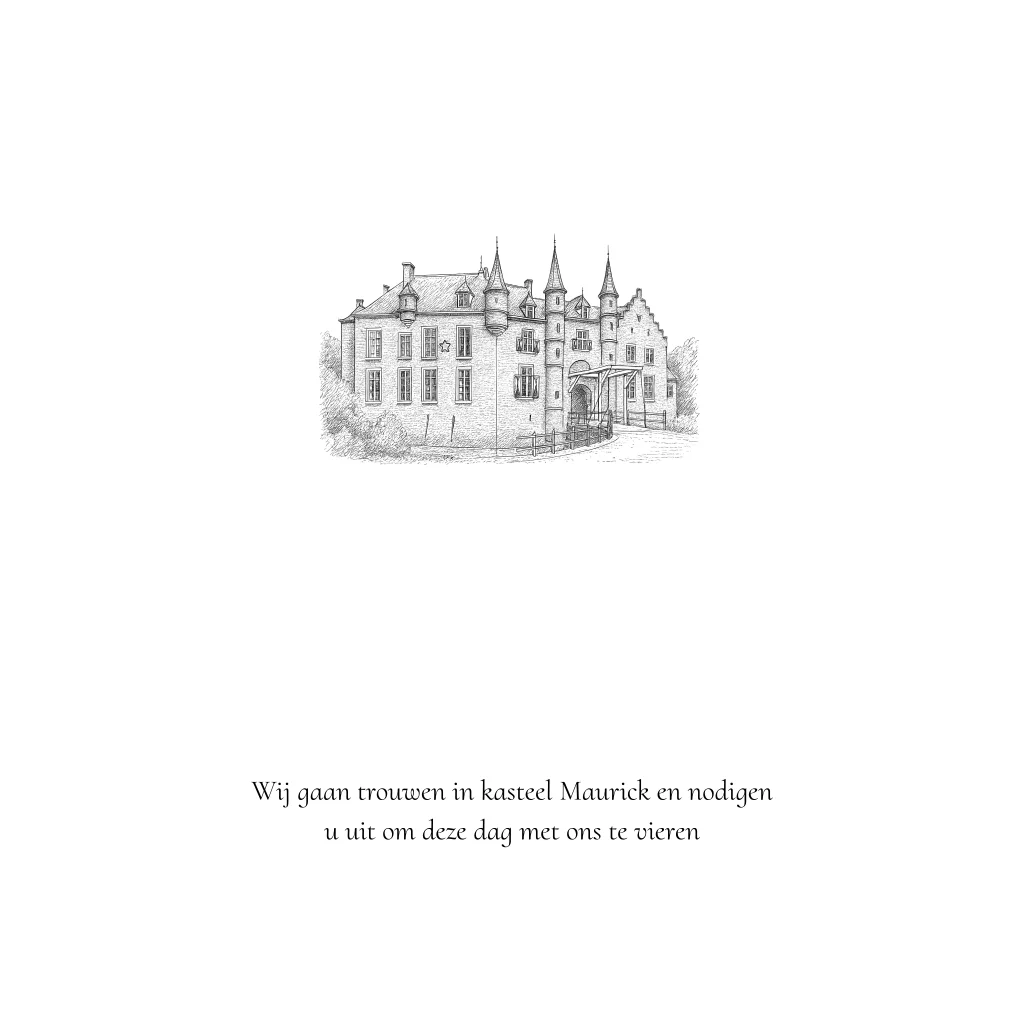 Klassieke trouwkaart met getekende locatie kasteel Maurick