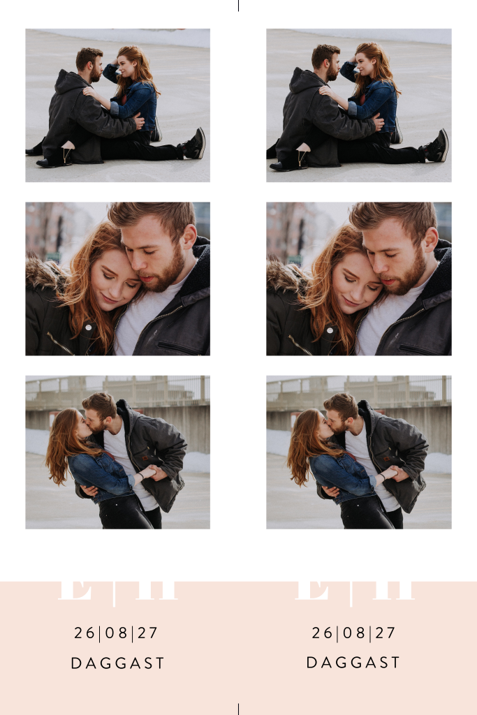 Helemaal blij met je trouwkaart, maar past niet alle informatie erop? Dan is dit hippe DIY label de oplossing. Je kunt in het witte kader 3 mooie foto's plaatsen. Met goudfolie staan jullie initialen voorop het kaartje. Op de achterzijde is ruimte voor het dagprogramma. Snijd of knip de kaart door midden en je hebt twee stijlvolle fotostrips met het dagprogramma.