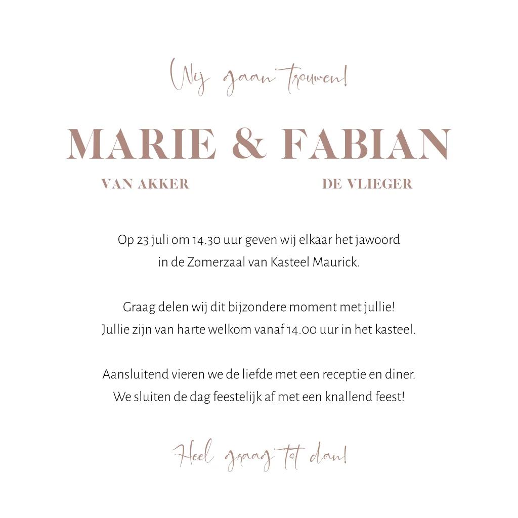 Personaliseer de kaart eenvoudig in onze online editor met jullie eigen namen en teksten. Bestel een proefdruk op linnenpapier om het ontwerp, kleuren en het houten hartje in het echt te bekijken.