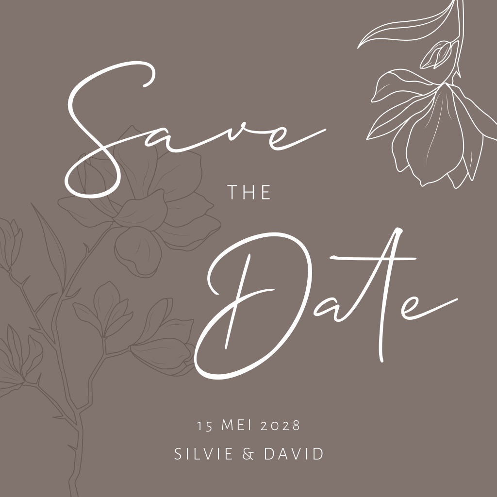 Maak je je klaar om later dit jaar in het huwelijksbootje te stappen? Begin met het verspreiden van een 'Save the Date'! Laat je betoveren door dit prachtige bruine ontwerp met roségoudfolie bloemen en speelse typografie.