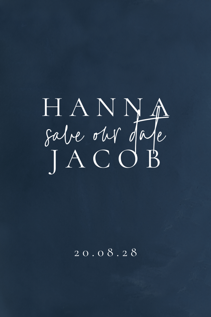 Een donkerblauwe save the date kaart met minimalistisch design en goudfolie accenten. Een subtiele aankondiging die jullie speciale dag met een vleugje luxe omhult. Jullie namen komen in klassieke letters voorop, met daartussen in glimmend goud 'save our date'. Bestel vandaag nog, markeer de datum en laat de liefde stralen.