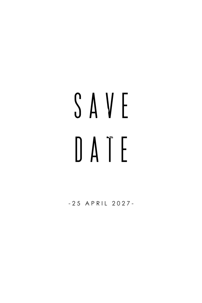 Op zoek naar een strak kaartje om jullie gasten alvast op de hoogte te stellen van jullie aankomende trouwdag? Ga dan voor dit moderne save the date kaartje met goudfolie lijnen, strakke typografie en minimalistische opmaak! De sierlijke letters maken het tot een speels geheel. Toch liever een ander lettertype of een achtergrondkleur? Gebruik onze ontwerptool om er je eigen draai aan te geven. Bekijk ook eens onze bijpassende trouwkaart.