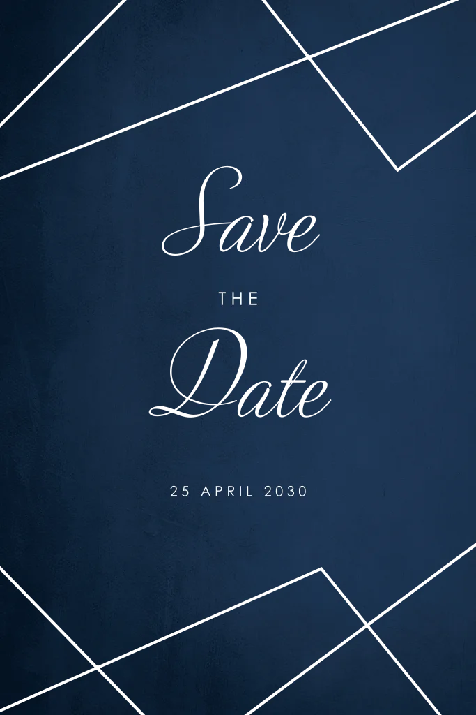 Ben je op zoek naar een minimalistische save the date kaart om jullie bruiloft alvast aan te kondigen? Ga dan voor dit strakke donkerblauwe save the date kaartje met koperfolie lijnen, moderne typografie en minimalistische opmaak! De handgeschreven letters maken het tot een speels geheel. Toch liever een ander lettertype of achtergrondkleur? Gebruik onze ontwerptool om er eenvoudig je eigen draai aan te geven. Bekijk ook eens de witte variant met goudfolie.