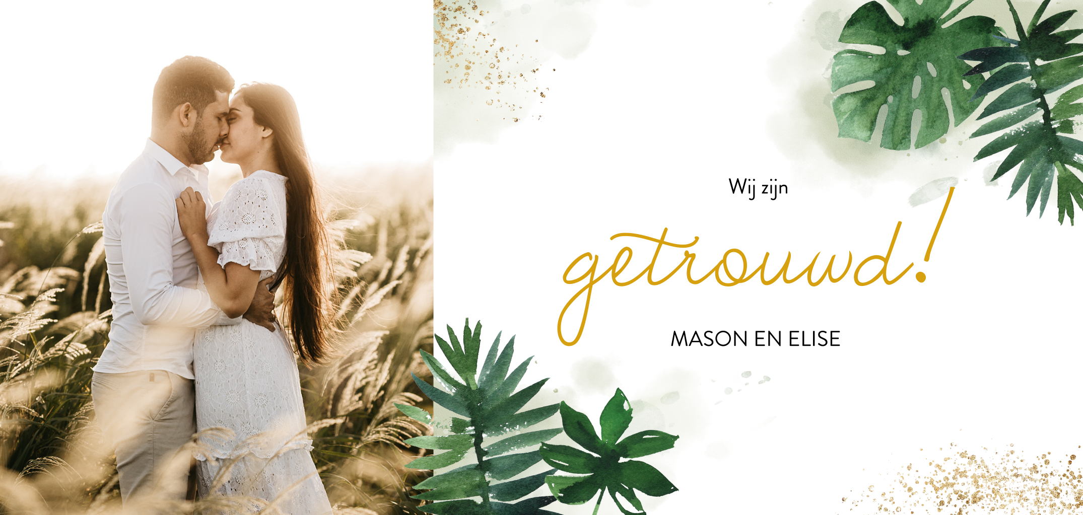 Door omstandigheden moeten trouwen in een klein gezelschap? Stel al je familie en vrienden hiervan op de hoogte door een wij-zijn-getrouwd-kaart te sturen. Je kan hier eventueel ook al het feest mee aankondigen. Extra leuk is het om een foto van de dag zelf te plaatsen, zo krijgen ze toch een beetje een indruk van hoe de dag geweest is.
