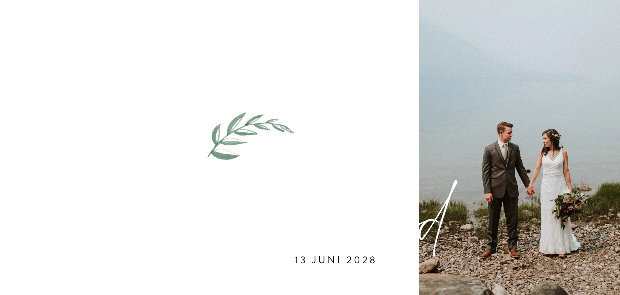 Zijn jullie klein getrouwd en op zoek naar een leuke kaart om jullie huwelijk mee aan te kondigen? Kies voor deze stijlvolle wij zijn getrouwd kaart met goudfolie en groene blaadjes die je na jullie jawoord naar alle vrienden en familie kunt sturen. Ook is er rechts ruimte voor een mooie foto. Op de achterzijde kun je ene persoonlijk bericht plaatsen en een eventuele uitnodiging voor een feest kwijt.