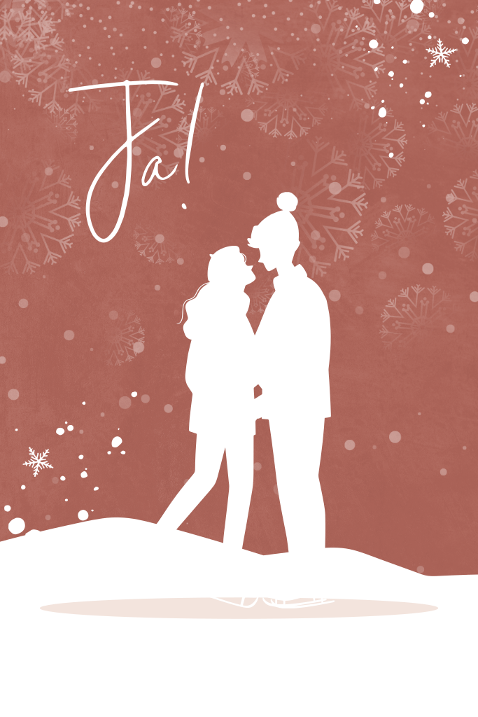 Trouwen jullie in de winter? Nodig iedereen uit met dit bijzondere silhouet trouwkaartje met een schaatsend koppel in prachtig roségoudfolie. De sneeuwvlokjes dwarrelen om dit verliefde koppel heen. Op de achterzijde is ruimte voor informatie over jullie trouwdag. Toch meer ruimte nodig en op zoek naar een dubbele kaart? Neem gerust even contact op met onze klantenservice. Daarnaast kun je deze winterse uitnodiging zelf personaliseren door teksten, kleuren, lettertypes en meer te wijzigen in onze editor.