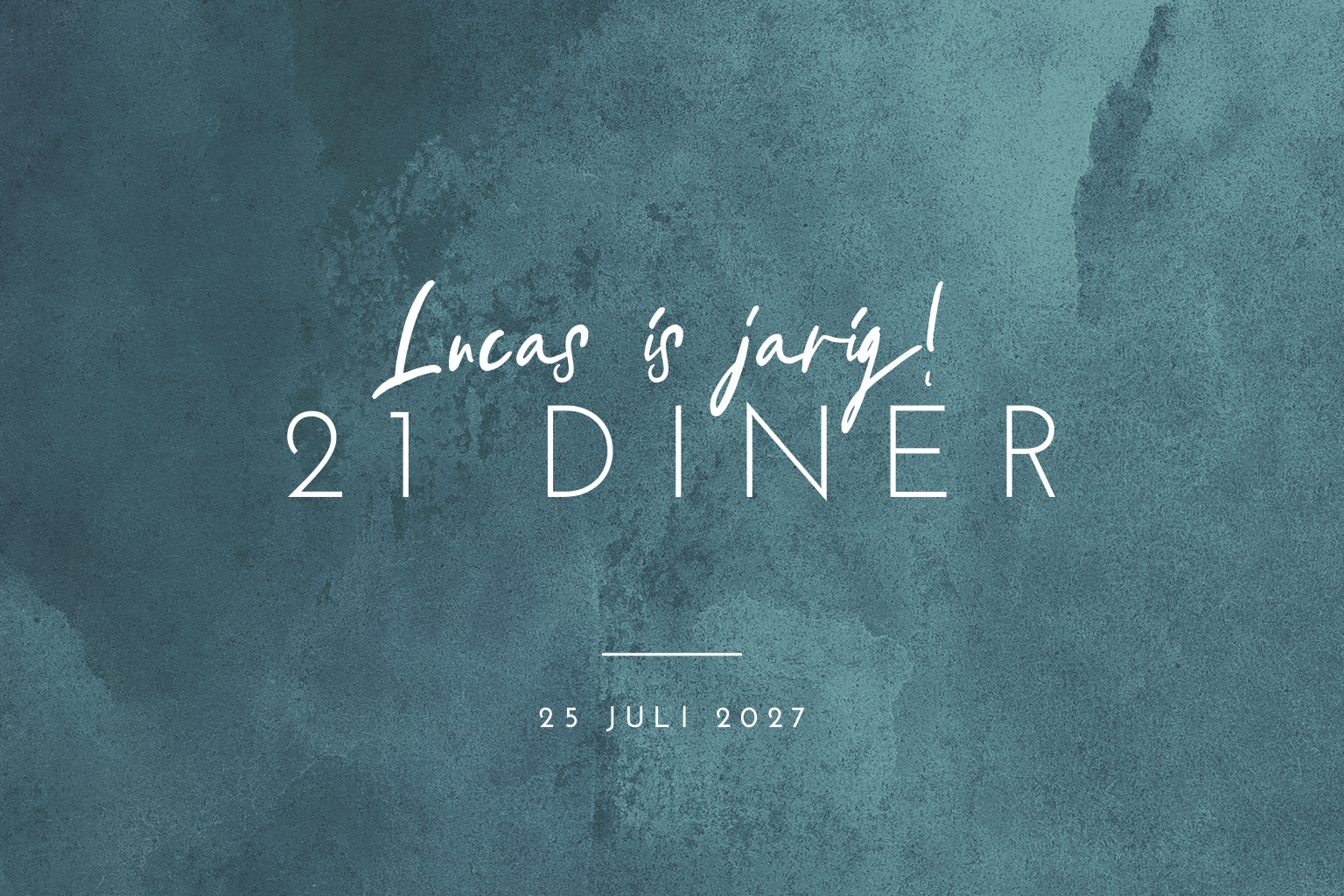 Op zoek naar een minimalistisch uitnodiging voor jouw 21 diner? Kies voor deze stijlvolle kaart met waterverf achtergrond in de kleur zeeblauw. De sierlijke typografie met goudfolie maakt het ontwerp helemaal af. Je kunt de kaart makkelijk personaliseren door andere lettertypes en achtergronden toe te voegen.