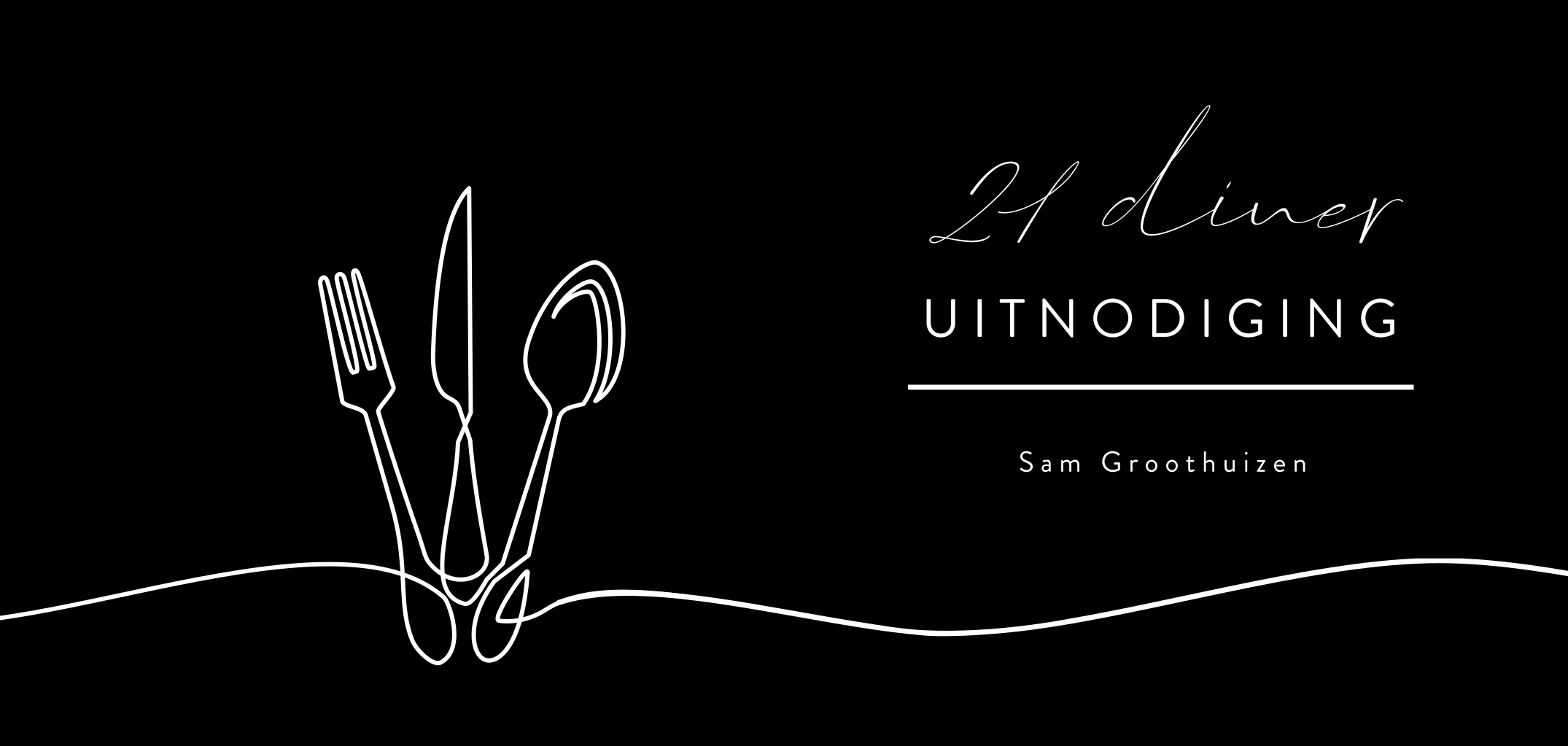 Zwarte uitnodiging 21 diner met bestek en goudfolie