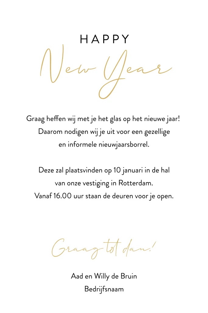Nieuwjaarsborrel 2027 uitnodiging met winterse takjes en bessen