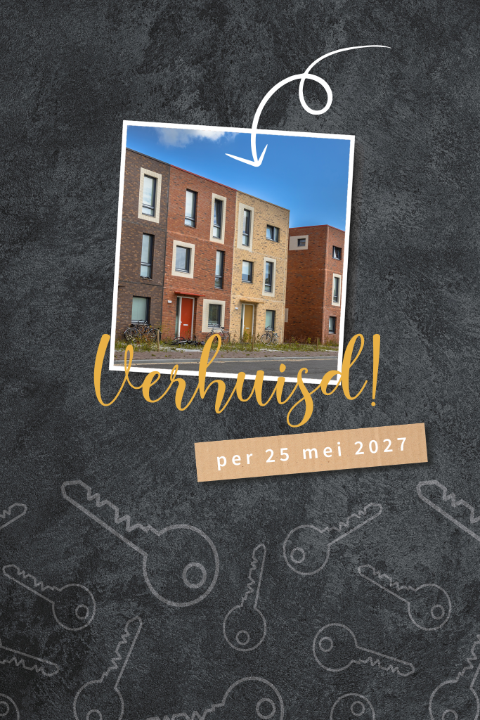 Op zoek naar een stoere verhuiskaart? Deze enkele kaart heeft een stoere achtergrond van zwart beton. In het witte fotokader kun je een mooie foto van jullie nieuwe huis plaatsen. Het patroon van de sleutels maakt het ontwerp helemaal af. Pas de kaart naar wens aan in onze handige designtool en bestel een drukproef om hem in het echt te beoordelen.