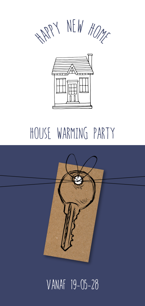 Ben je op zoek naar een verhuiskaart om jullie adreswijziging door te geven of je vrienden uit te nodigen voor een feestje? Met deze verhuiskaart kun je alle kanten op, leuke illustratie van een huisje en een label met sleutel. Achterop is ruimte voor een mooie foto van jullie huis en je kun je tekst kwijt.