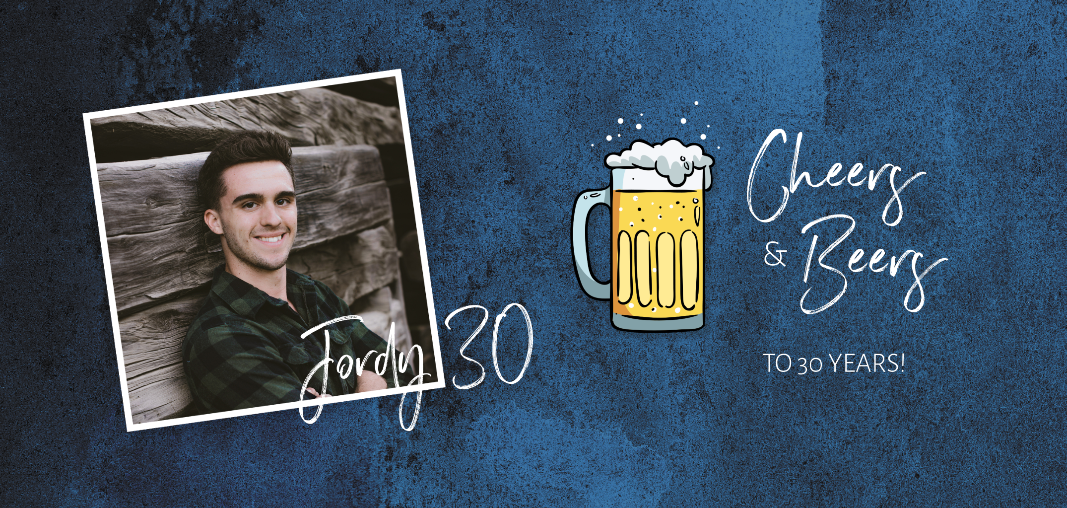 Blauwe uitnodiging cheers & beers. Op zoek naar een stoere uitnodiging voor je verjaardag om naar je vrienden te sturen? Ga dan voor deze stoere blauwe kaart voor het vieren van je verjaardag in de kroeg. Op de achterkant is er ruimte voor de datum en gegevens van de locatie. Personaliseer en voeg je eigen foto toe.