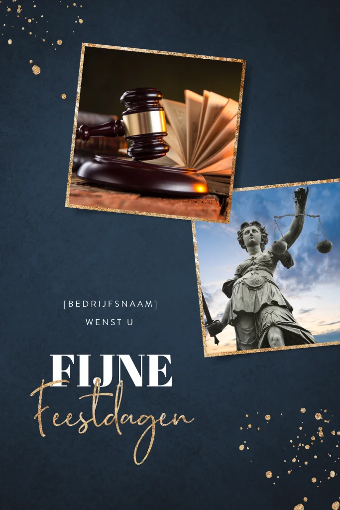 Blauwe kerstkaart advocatuur met goudlook fotokader en spetters