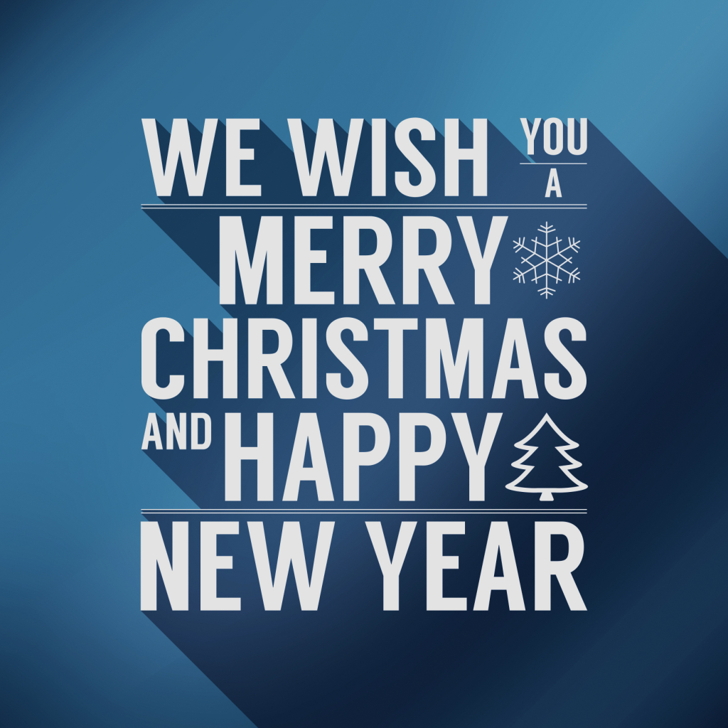 Stijlvolle kerstkaart met "We wish you a merry christmas and happy new year in een stoere typografie.