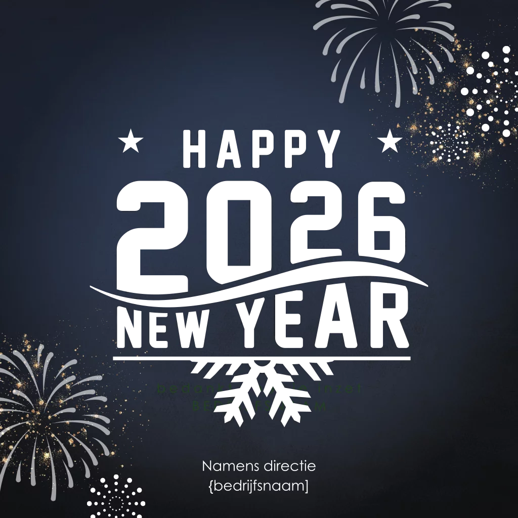 Aan het einde van het haar wil je je zakenrelaties natuurlijk een hippe nieuwjaarskaart sturen. Dit donkerblauwe ontwerp met mooie typografische tekst in goudfolie is perfect. Pas het ontwerp aan in de ontwerptool en bestel een drukproef.