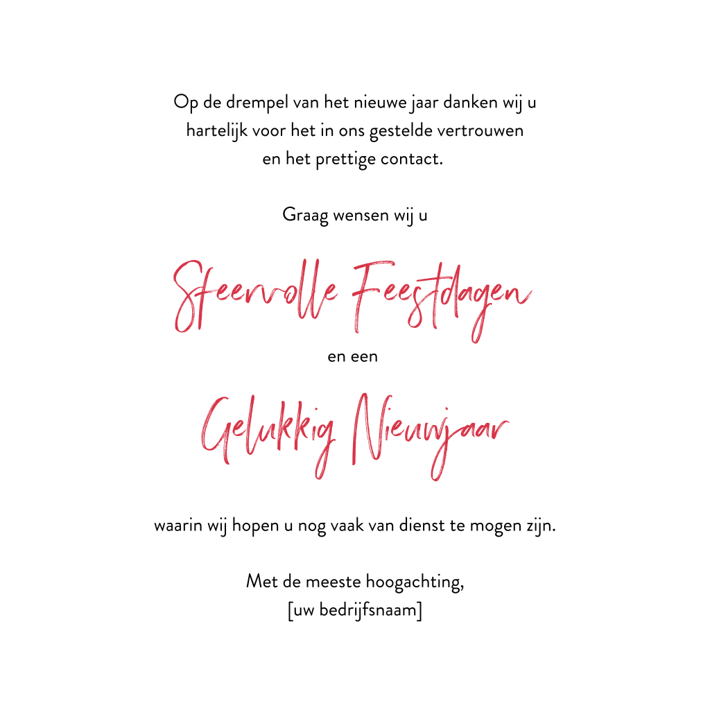 Grappige kerstkaart met cartoon kerstmuts met op de pom pom ruimte om het logo van je bedrijf te plaatsen. Zo wens je je collega's en relaties een vrolijke kerst toe. Vraag eerst een drukproef aan om het ontwerp in het echt te zien.